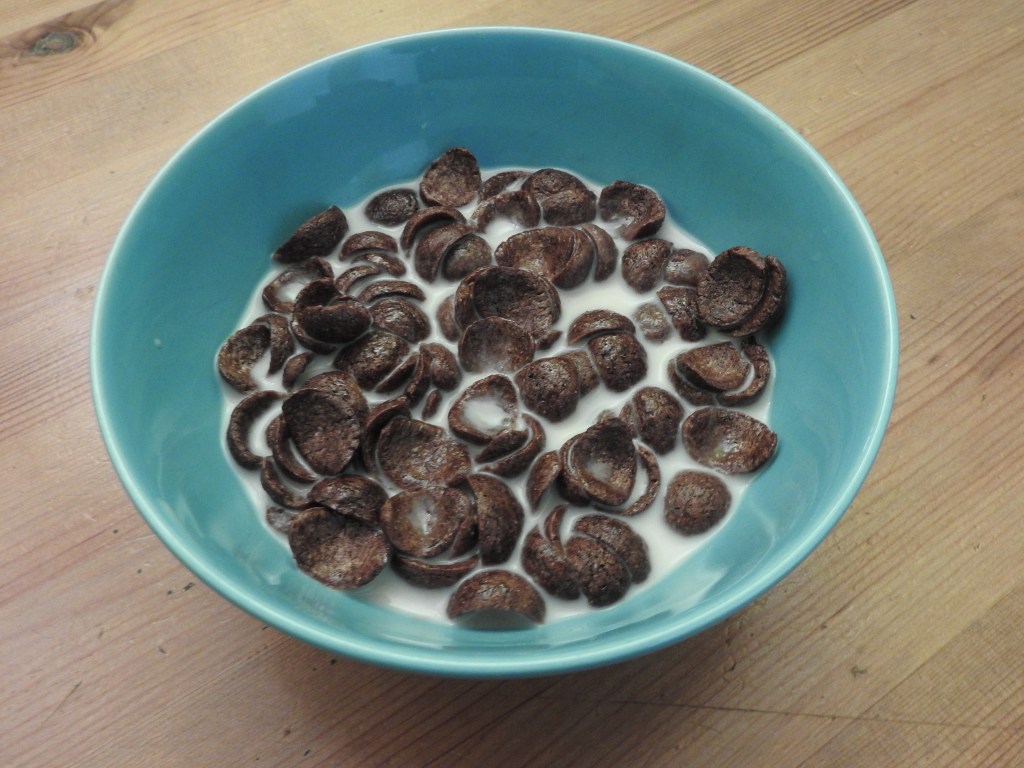 - Pomalutku nalewaj mleko aż pokryje płatki.