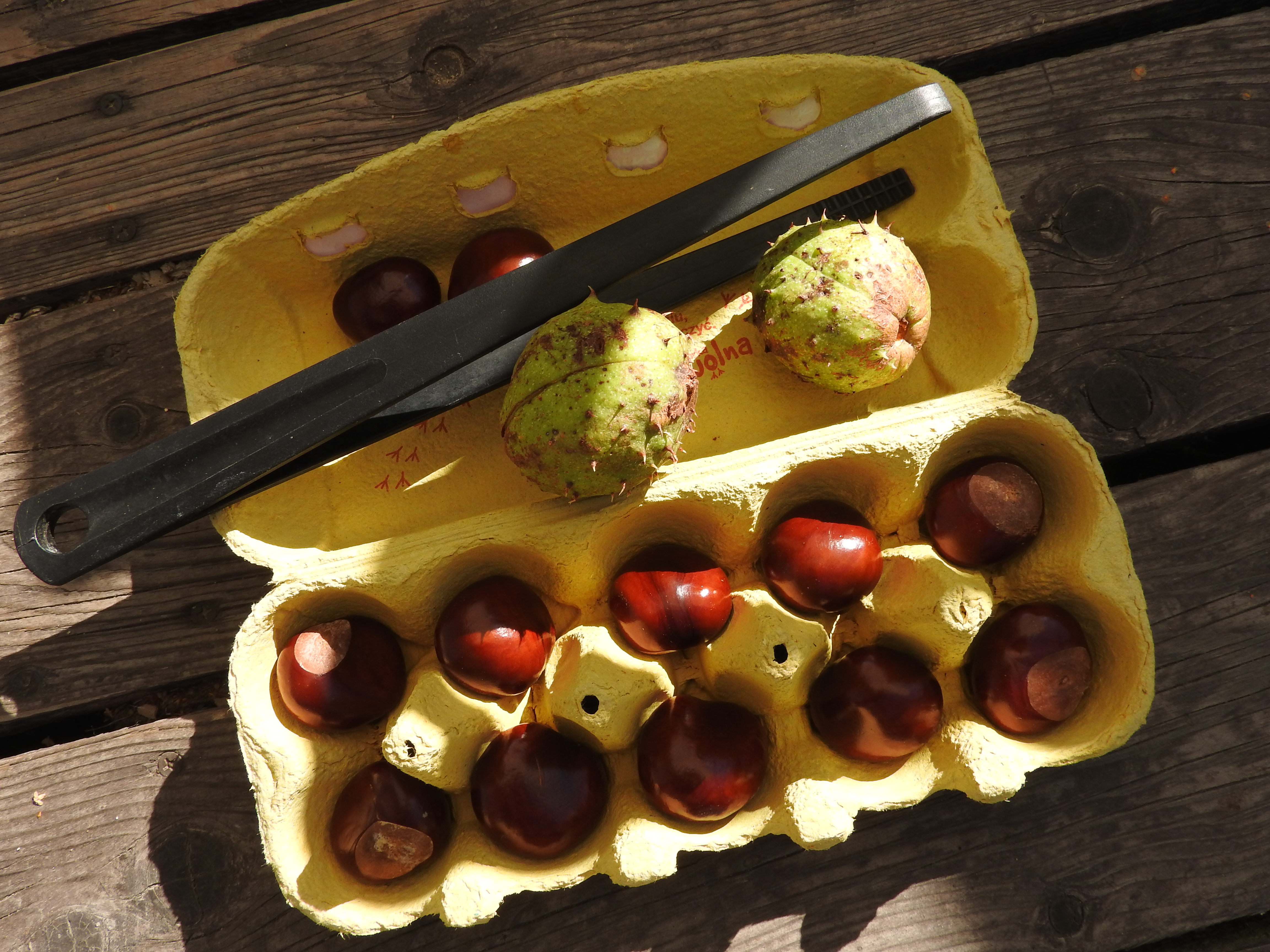 - Wyjmij ze słoika pierwszy kasztan – używaj tylko szczypiec.