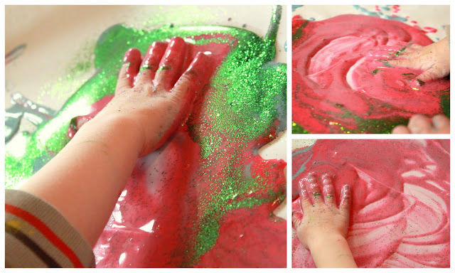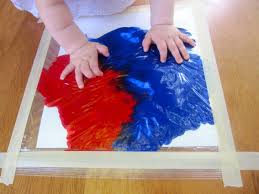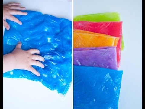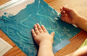 - Poeksperymentujcie z różnymi galaretowymi produktami, np. żelem do włosów, zrób małą dziurkę w dolnym rogu plastikowej torebki, aby dziecko mogło, ściskając ją jak rękaw cukierniczy, rysować na papierze lub tacy.