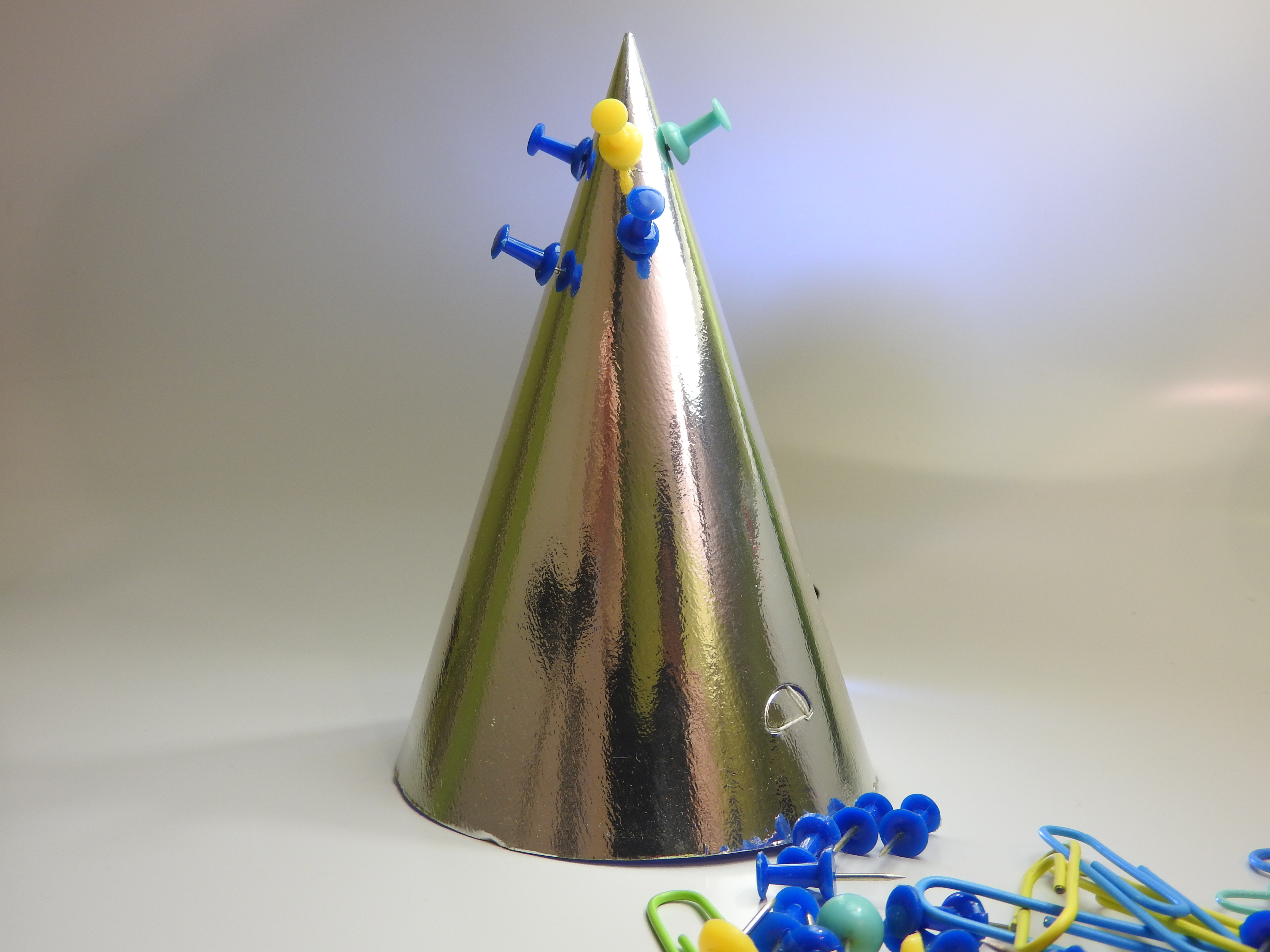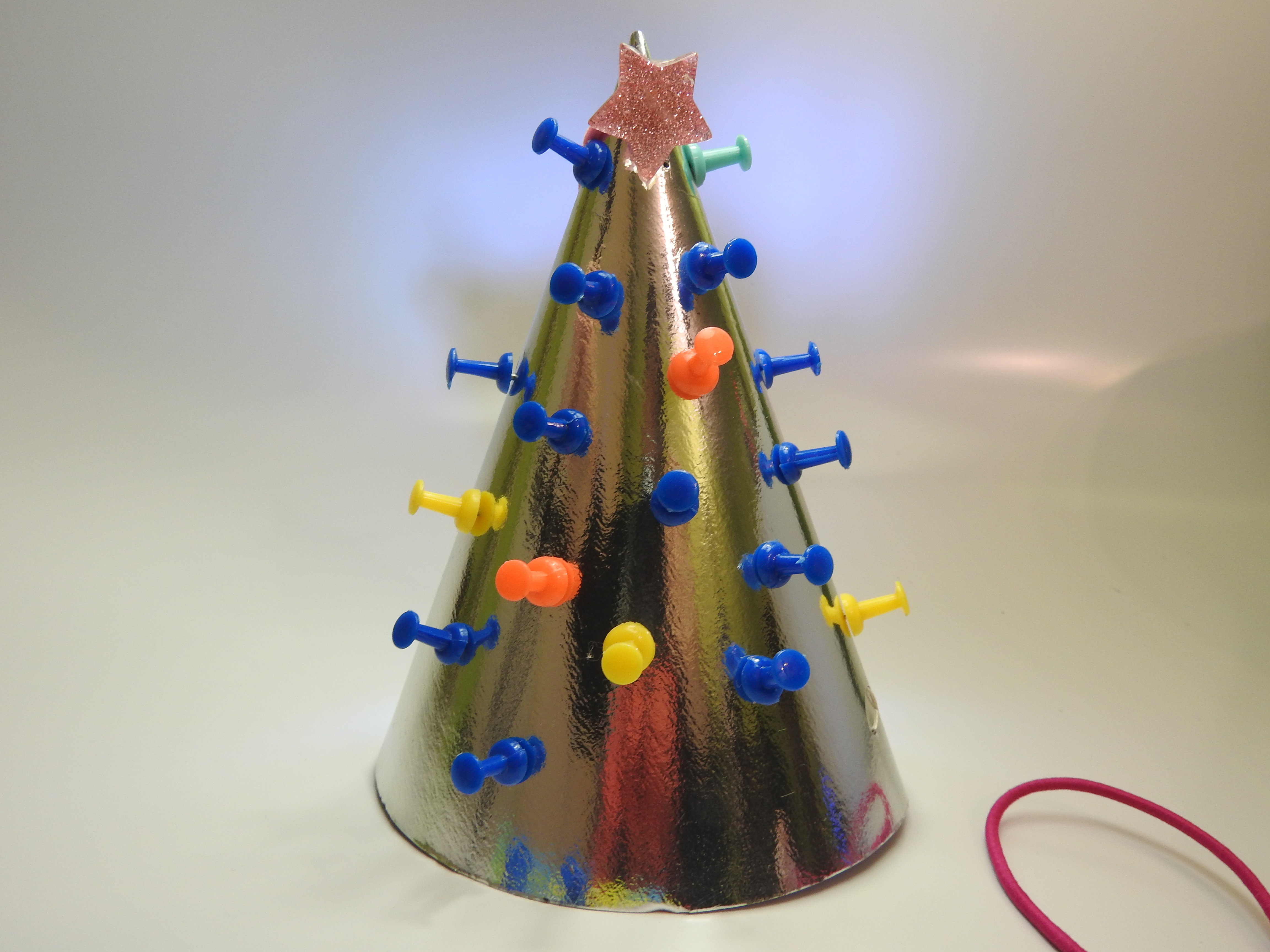 Pinezkowe choinki to kolejna świąteczna wariacja sensoryczno-motoryczna. Tym razem z wykorzystaniem pinezek i urodzinowych „czapeczek”.