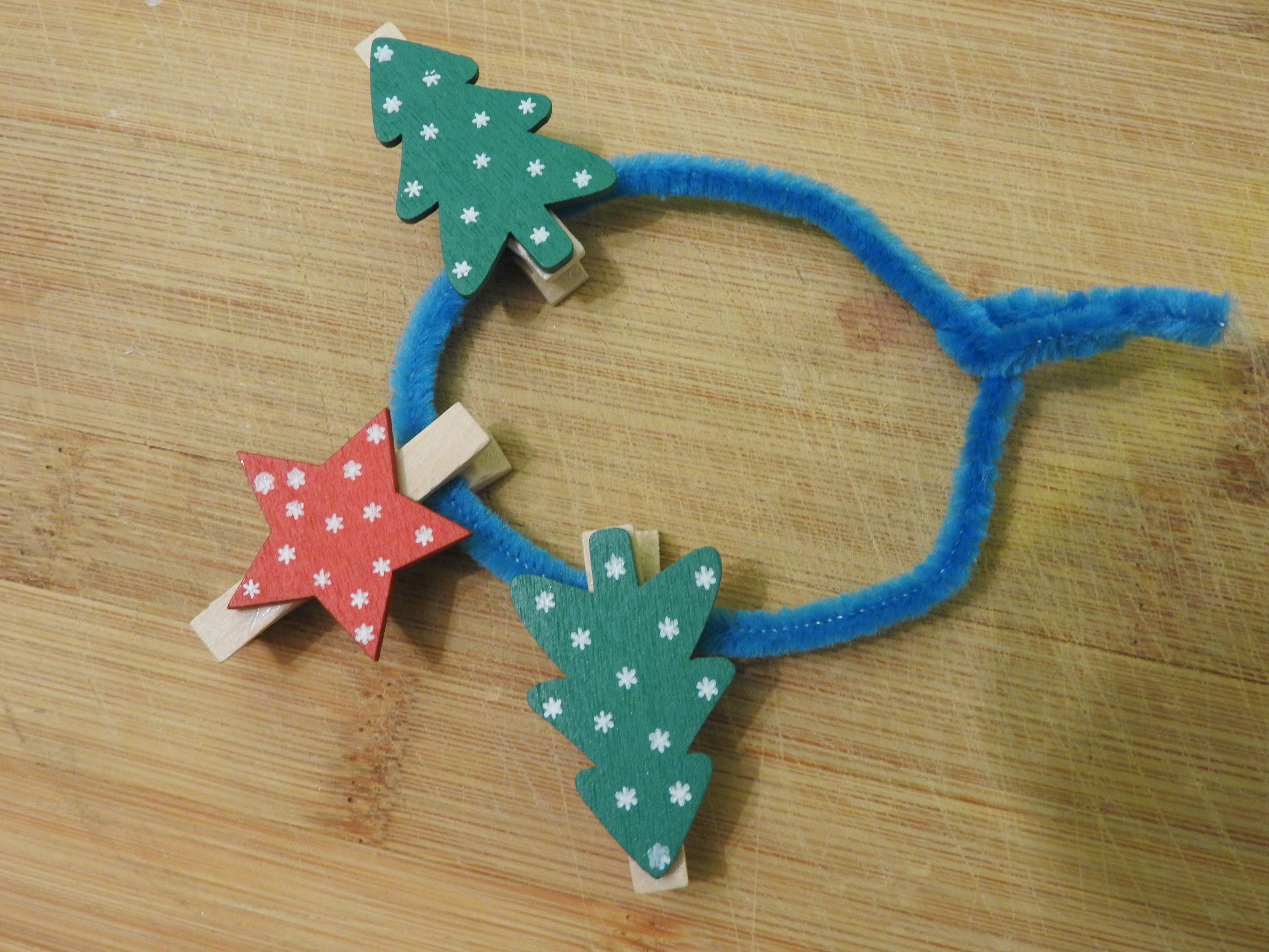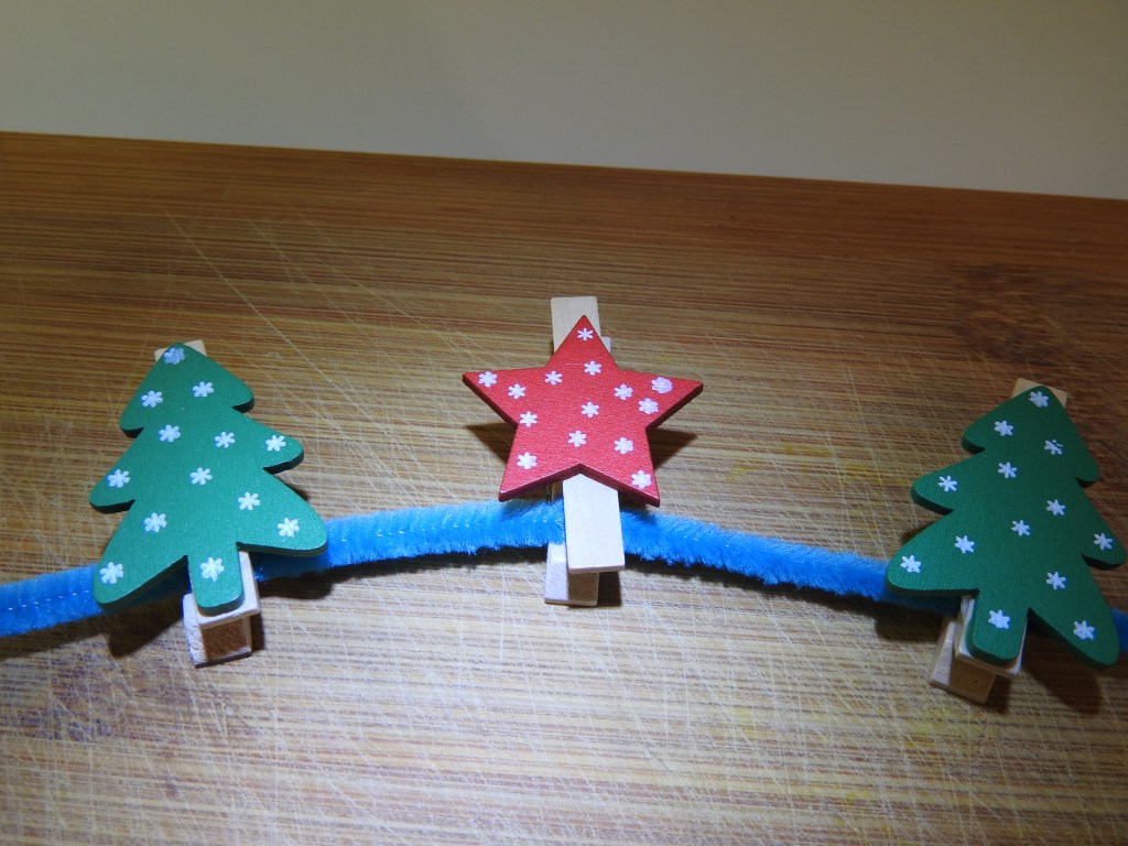 - Sznurek, puchaty drucik, tasiemka lub wstążka do mocowania klamerek.