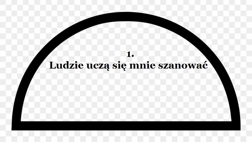 Szacunek to sposób, w jaki ludzie powinni się wzajemnie traktować. Szacunek przypomina okrąg podzielony na dwie połówki.