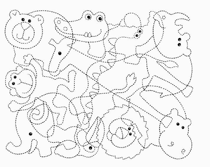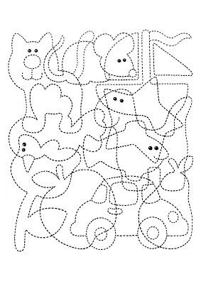 Ćwiczenia: Znajdź wszystkie ukryte kształty. Obrysuj każdy kształt kredką w innym kolorze po śladzie.