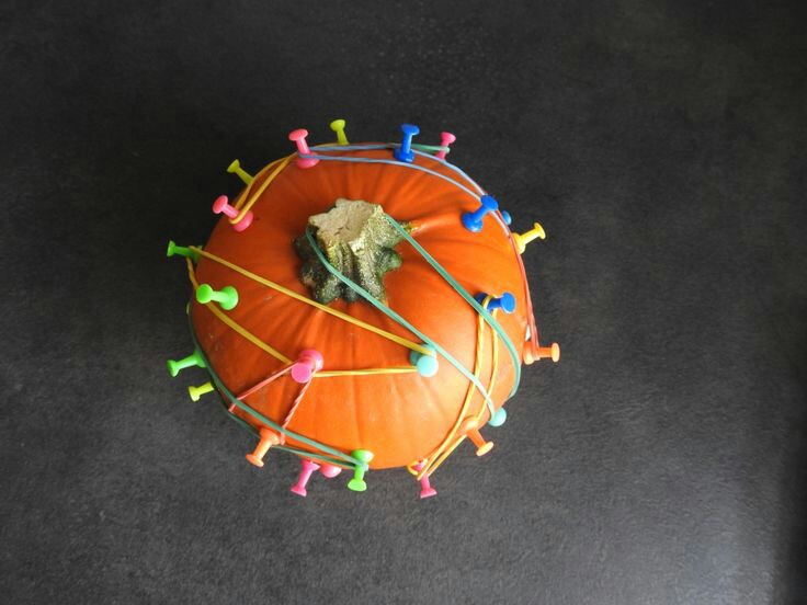 Dynia, pinezki i gumki to wciągająca zabawa sensoryczna wspomagająca chwyt szczypcowy i planowanie motoryczne. To dobry pomysł na zbliżający się Halloween…