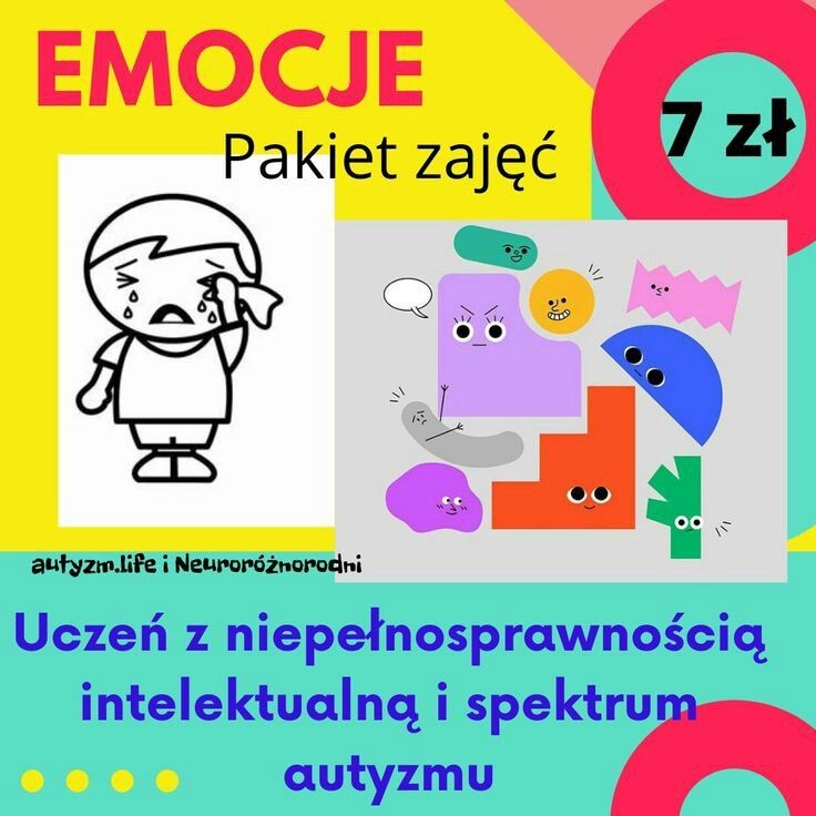 - Pakiet zajęć „Emocje” dla uczniów z niepełnosprawnością intelektualną i ze spektrum autyzmu – 7 zł. Opłata jednorazowa