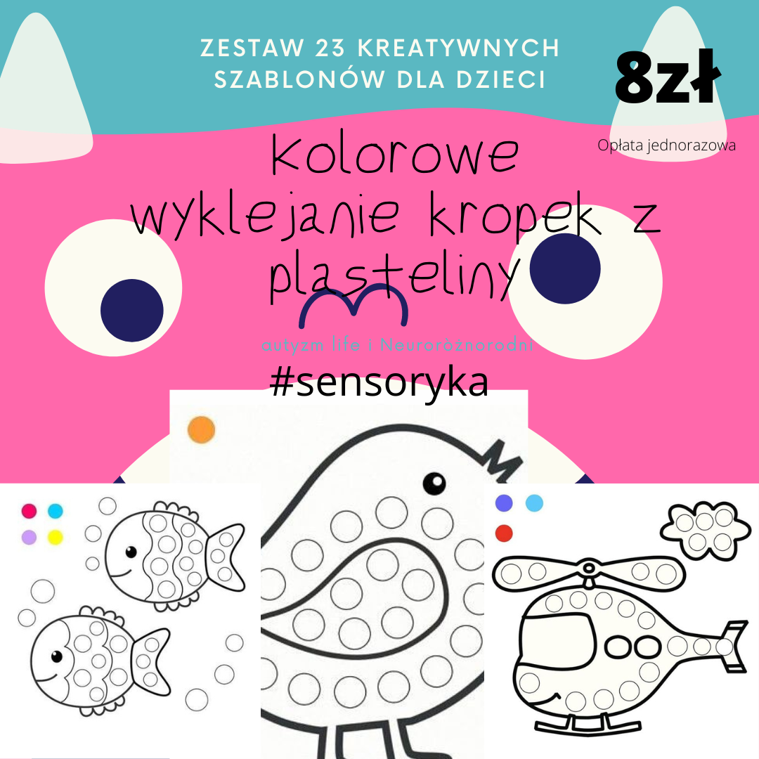 Kolorowe wyklejanie kropek z plasteliny – zestaw 23 kreatywnych szablonów dla dzieci – 8 zł