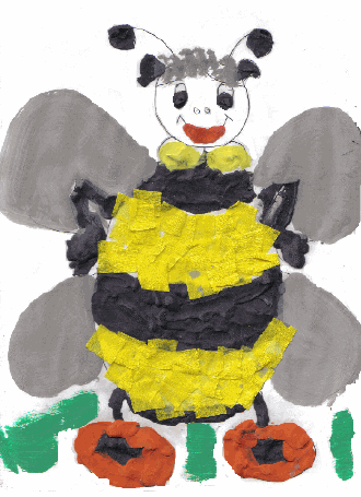 | OBSZAR EDUKACYJNY: . CEL OGÓLNY: Rozwijanie sprawności palców i dłoni, łączenie różnych materiałów plastycznych. CELE SZCZEGÓŁOWE: Dziecko: • wie jak wygląda pszczoła • zna zwyczaje pszczoły • tworzy całość z różnych materiałów plastycznych • stara się utrzymać w ramach konturu pszczoły POMOCE: szablon pszczoły, plastelina, karbowana bibuła, pędzel, klej, farba plakatowa w szarym kolorze, woda PRZEBIEG ZAJĘCIA: 1. Rozmowa na temat wyglądu i zwyczajów pszczół w nawiązaniu do znanej postaci Pszczółki Mai. 2. Zabawa ruchowa Dzieci i pszczoły według K. Wlaźnik. 3. Omówienie sposobu wykonania pracy – zastosowania poszczególnych materiałów. 4. Zajęcie miejsc przy stolikach. Każde dziecko otrzymuje szablon pszczoły, plastelinę czarną lub brązową oraz czerwoną, bibułę karbowaną pociętą na kawałki, farbę, pędzle. 5. Właściwy tok pracy. |