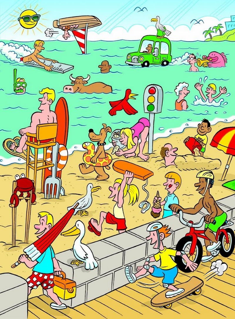 Arkusze do wspomagania mowy są tak skonstruowane, że w każdym z nich kryje się „błąd” – coś, co zupełnie nie pasuje do przedstawionych zdarzeń przedstawionych na obrazku. Ten błąd jest świetnym punktem wyjścia do wielu rozmów: