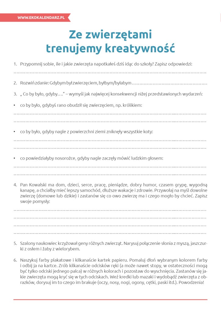 Arkusz „Ze zwierzętami trenujemy kreatywność”