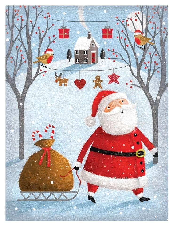 Muzyka relaksacyjna; rysunki przedstawiające słonia, sowę, Mikołaja, choinki; kartony, mazaki, sznurek, woda mineralna.