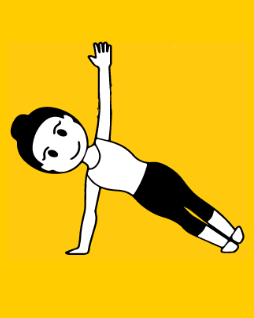 Zacznij od pozycji deski (16). Ciało napięte. Przekręć się w prawą stronę – zrotuj stopy i ciało, pozostań na lewej dłoni. Unieś biodra do góry. Prawą rękę wyciągnij do góry. Utrzymaj stabilną i silną pozycję. Ciało w jednej linii, nogi proste. Po kilku oddechach powróć do pozycji deski a następnie zrób deskę boczną na lewą stronę.