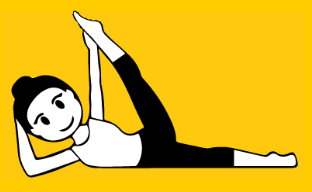 Połóż się na prawym boku. Zwróć uwagę aby nogi były w linii tułowia. Oprzyj się na prawym łokciu, możesz sobie podłożyć dłoń pod głowę tak jak na rysunku lub położyć głowę na ramię. Napnij mięśnie brzucha. A teraz podnieś lewą nogę i złap dłonią za stopę lub łydkę przyciągając nogę do głowy. Jeśli Ci to sprawia trudność nie przejmuj się, weź pasek do jogi lub od szlafroka i załóż pasek na stopę. Pozycja wygląda na łatwą, cała trudność polega na tym, aby się nie przechylać do tyłu ani do przodu. Pilnuj równowagi. Powtórz ćwiczenie na lewą stronę.