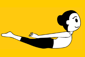 rękoma do tyłu, unieś głowę, barki i klatkę piersiową. Jeśli nie bolą Cię plecy unieś także nogi. Pozostań w pozycji kilka oddechów. Rozluźnij twarz.