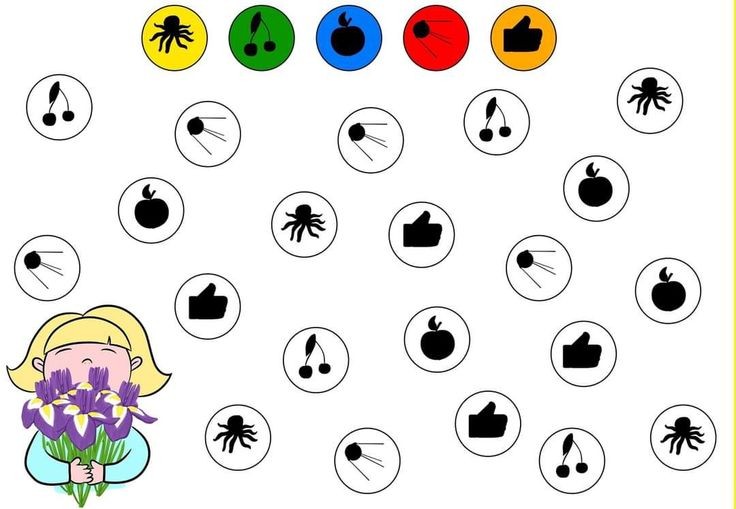 Ćwiczenie: pokoloruj kółeczka z elementami zgodnie z kodem. Nazwij kolory/rzeczy.