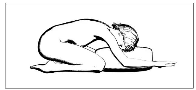 Przebieg: Dziecko układa się na kocu w wygodnej pozycji (patrz: rysunek), a następnie zamyka oczy. Rodzic wykonuje lekki masaż – dziesięć przeciągnięć otwartą