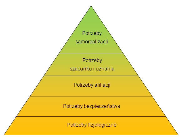 A. Maslow dokonał podziału potrzeb. Potrzeby niższego rzędu wynikają z braku czegoś (fizjologiczne czy też bezpieczeństwa), potrzeby wyższego rzędu zwane są także potrzebami rozwoju.