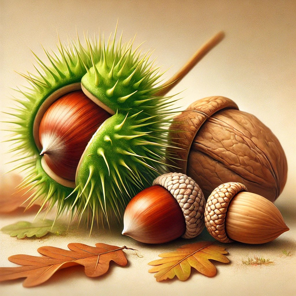 - Materiały potrzebne: Obrazki przedstawiające jesienne przedmioty (np. kasztany, żołędzie, orzechy), liście, karty do pisania i rysowania, flamastry, kredki, magnetyczne litery (opcjonalnie)