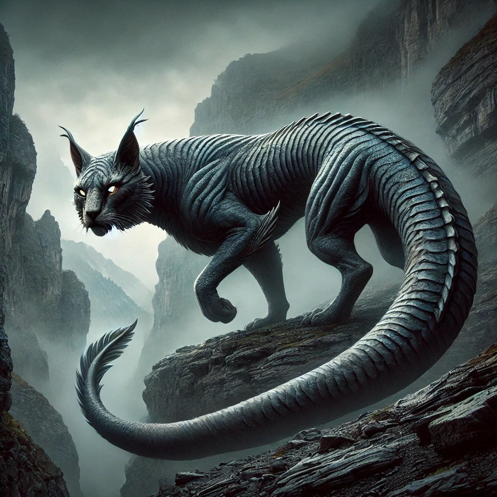 - Tatzelwurm to szwajcarski koto-smok, który według alpinistów ma ciało kota ale jego ogon i głowa przypominają smoka. Potrafi chować się w górach i straszyć pasterzy. (Tatzelwurm to legendarna istota z folkloru alpejskiego, szczególnie popularna w Szwajcarii i Austrii. Opisywany jest jako hybryda kota i smoka – ma kocie ciało, ale jego głowa i ogon przypominają smocze cechy. Według opowieści alpinistów i pasterzy potrafi ukrywać się w górskich jaskiniach i nagle wyskakiwać, strasząc ludzi. Niektórzy twierdzą, że ma ostre zęby i zieje trucizną, choć brak dowodów na jego istnienie. Tajemnicze relacje o Tatzelwurmie wciąż inspirują poszukiwaczy i miłośników legend).