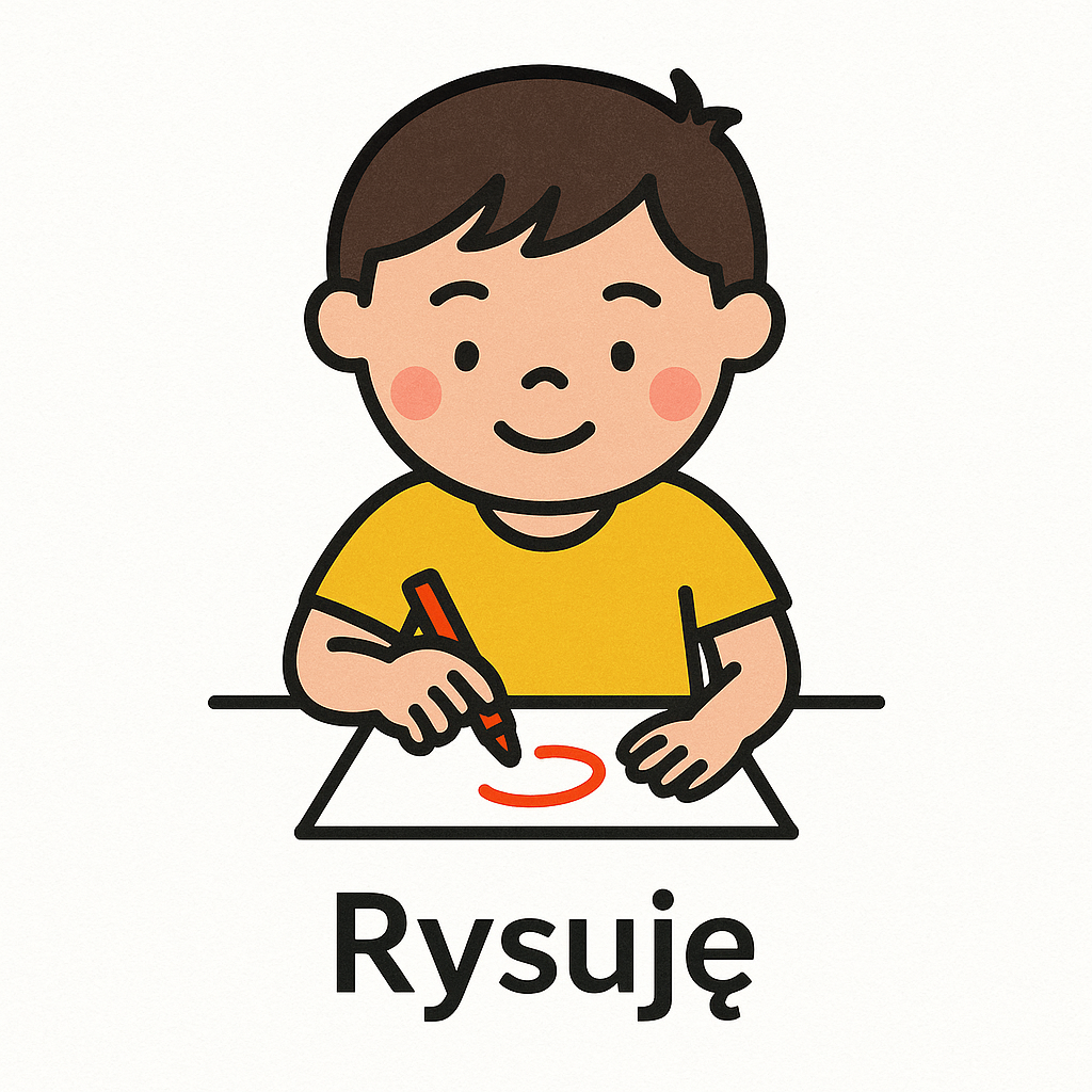 - piktogramy z instrukcjami (np. „usiądź”, „pomaluj”, „naklej”, „skończyłem”).