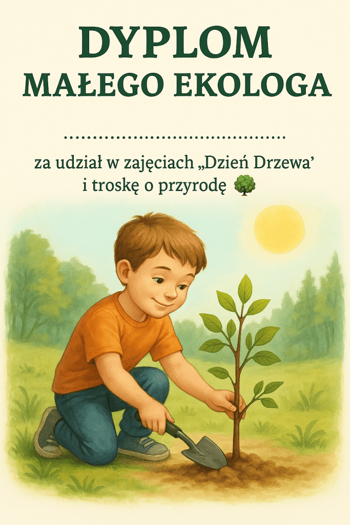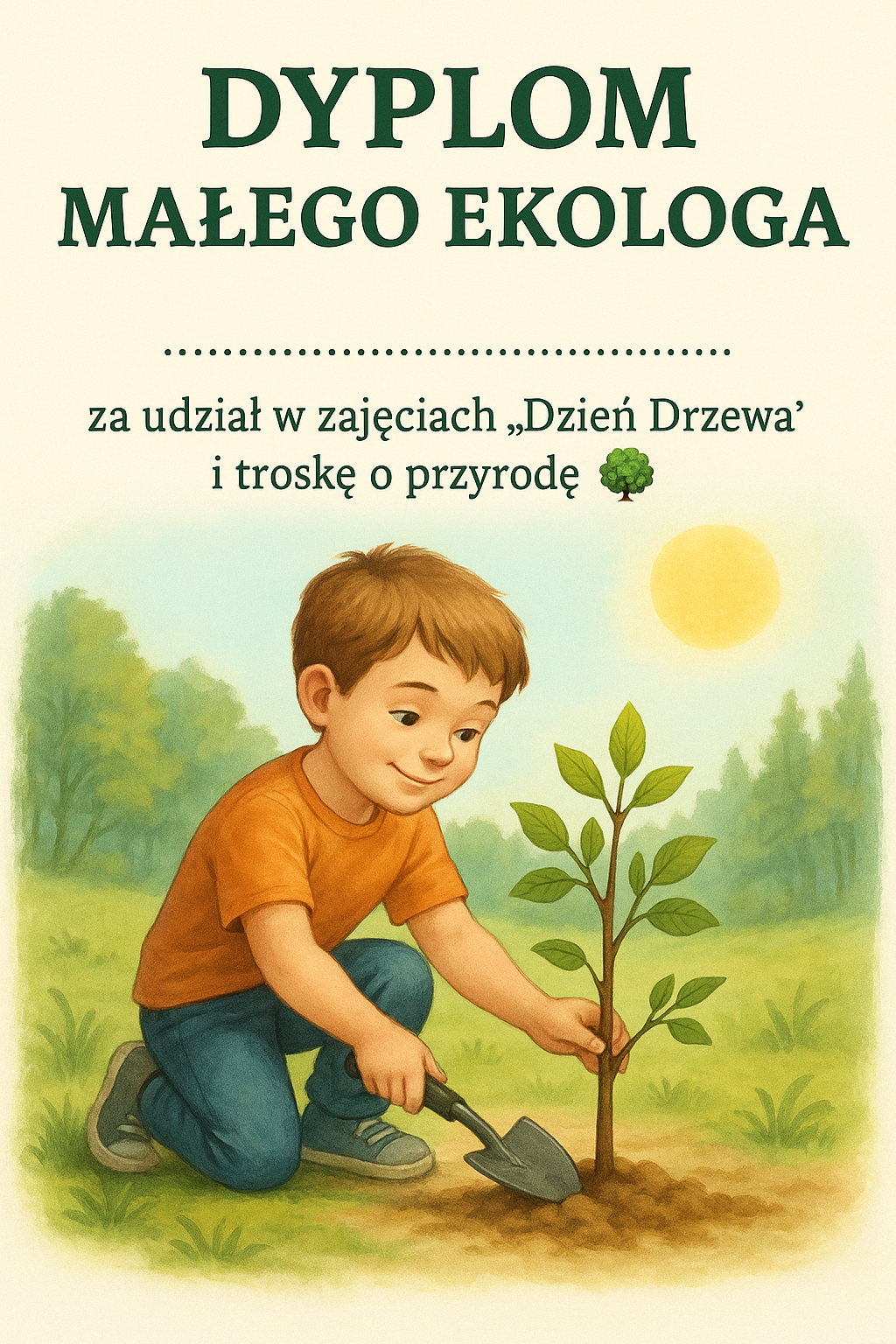 Na koniec nauczyciel rozdaje Dyplomy Małego Ekologa i wspólnie śpiewają prostą piosenkę o drzewach.