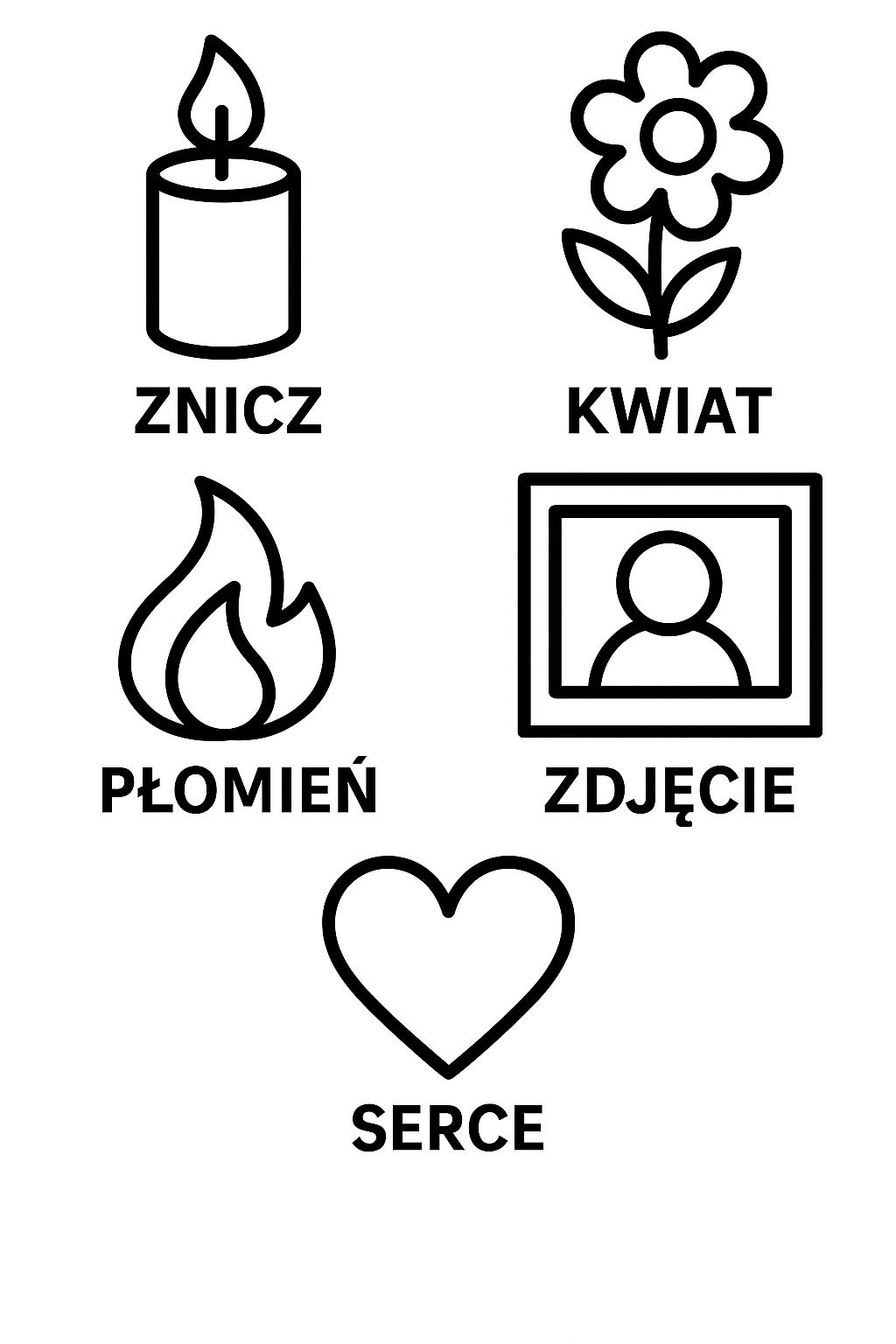 - dziecko rozpoznaje podstawowe symbole: znicz, kwiat, płomień, fotografia, serce