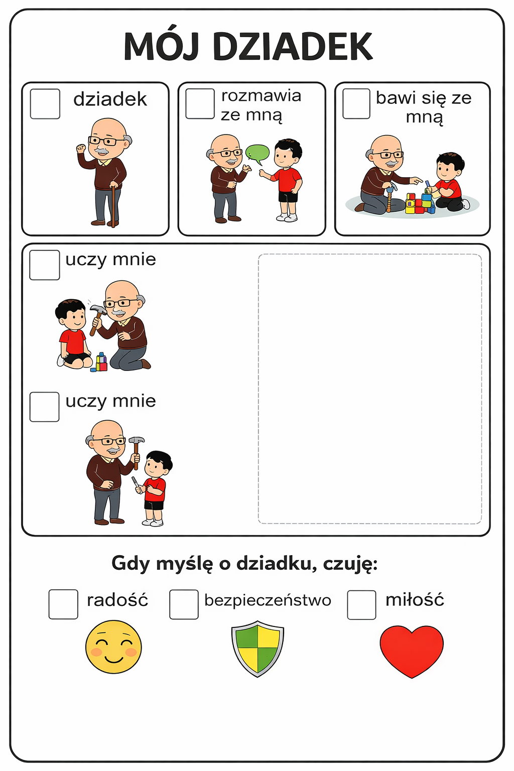 2️⃣ Komunikacja wspomagana – „Moja babcia / mój dziadek” (15 min)