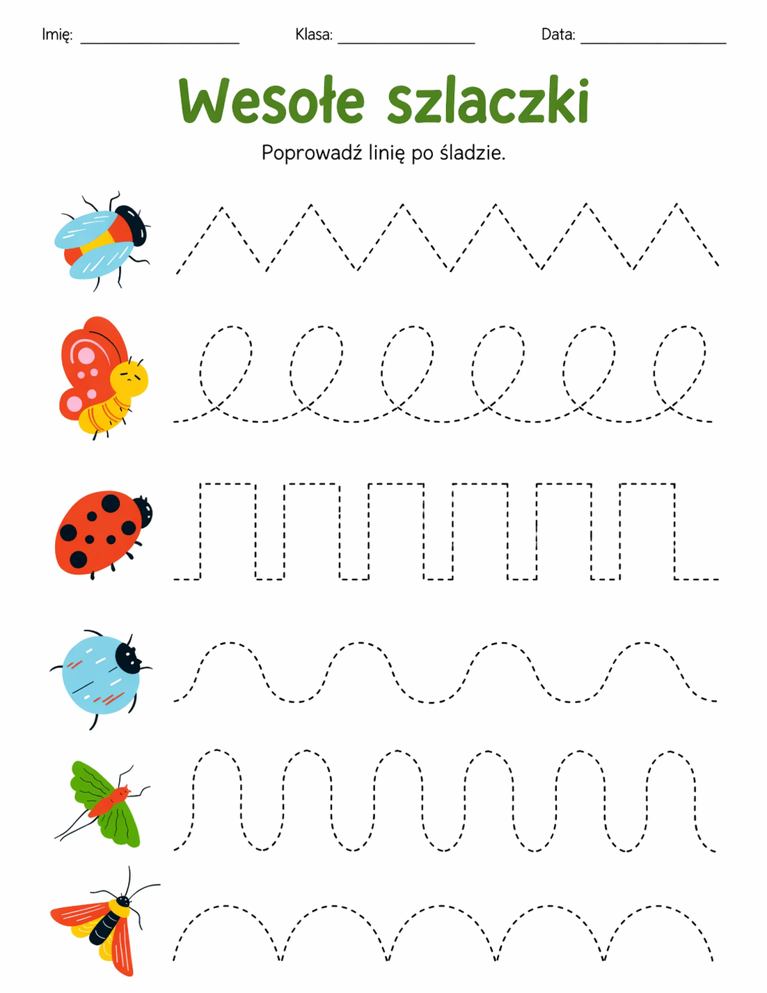 🔹 2. Rozgrzewka ręki (grafomotoryka) (10 min)